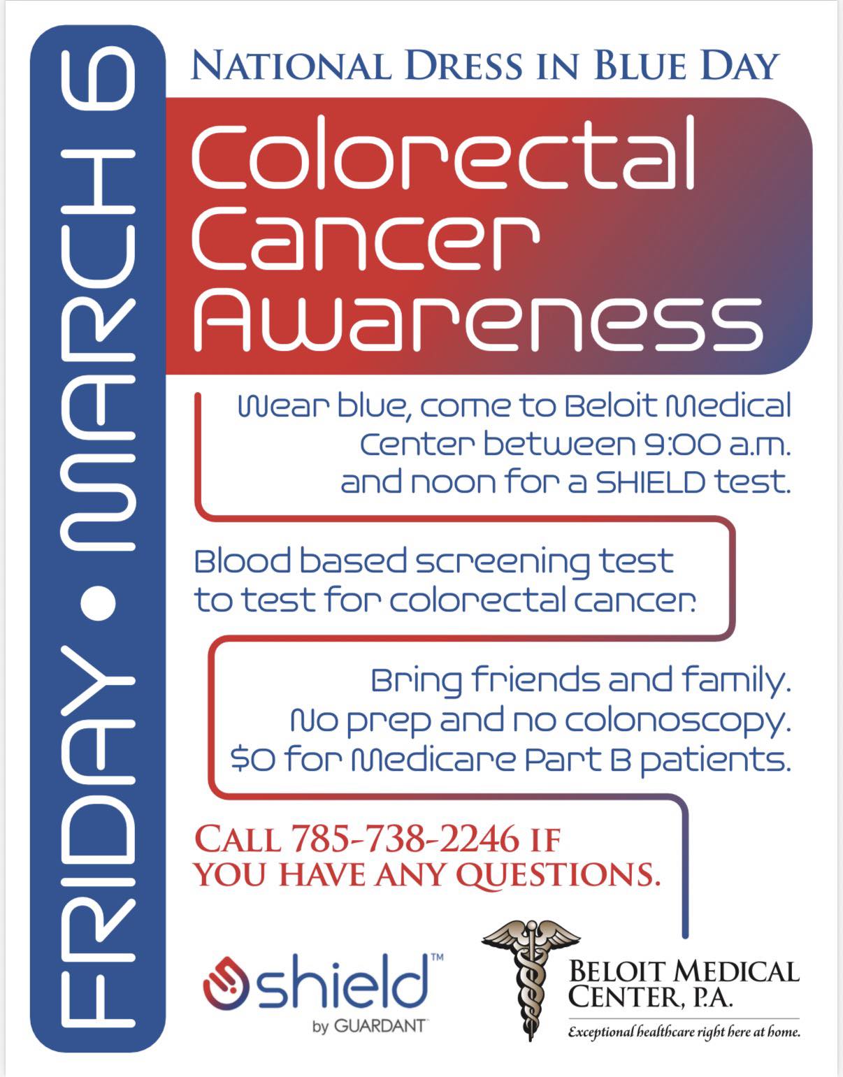 Join us for National Dress in Blue Day Friday March 6th and get your Shield test done! Wear blue and come in anytime between 9-12 on Friday, March 6. SHIELD test is a blood test and is $0 for patients with Medicare Part B coverage. If you do not have Medicare Part B, contact your insurance for coverage details.