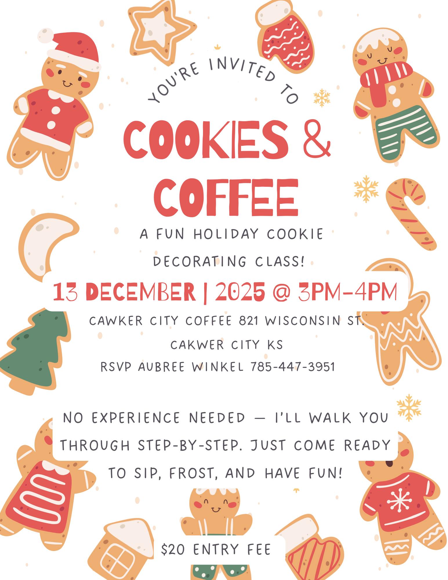 A local holiday show with 15 local vendors, Cawker City Coffee, and a food truck.