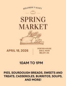 The next Solomon Valley Spring Market will be Saturday, April 18, 10 am to 1 pm, at The Porter House...