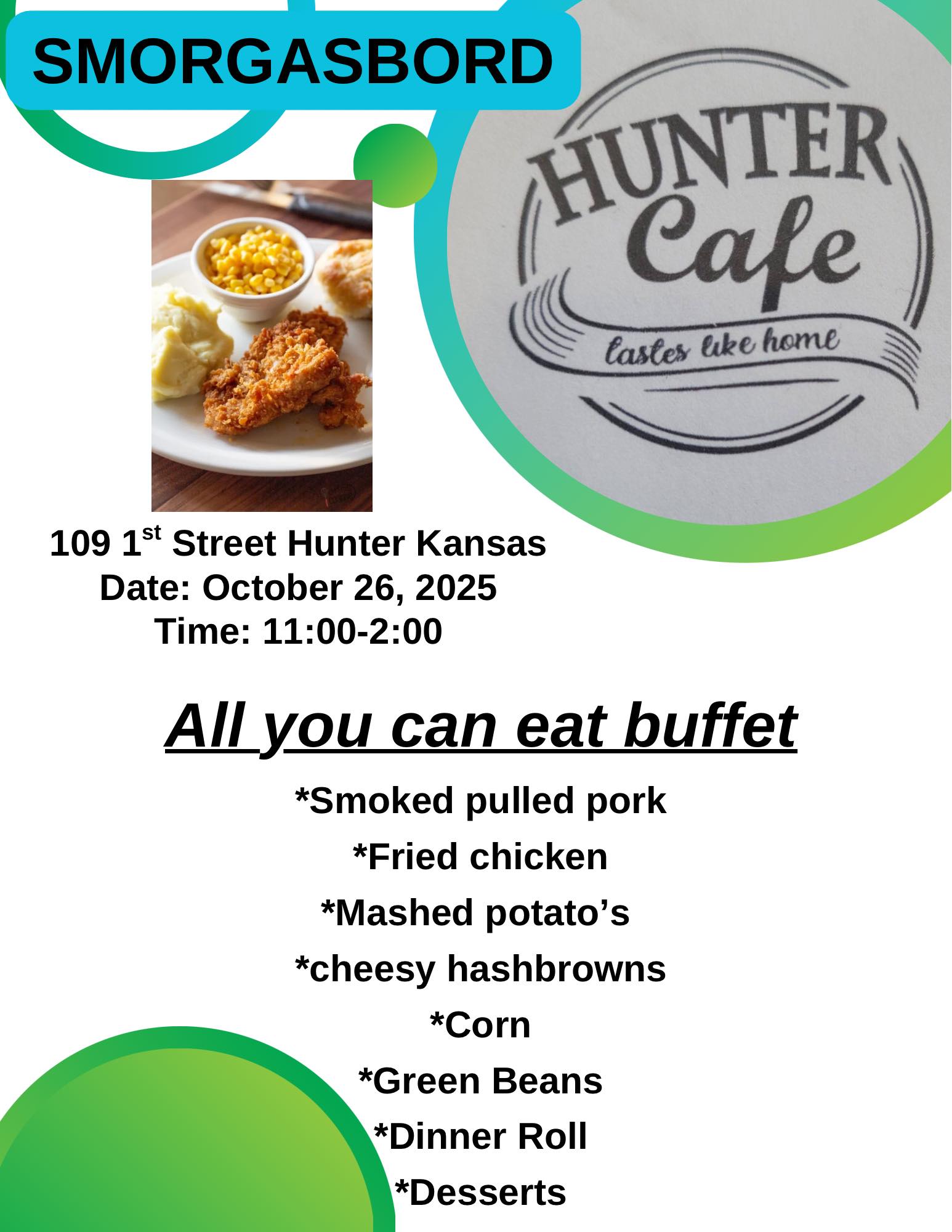 All you can eat buffet at the Hunter Cafe! Pulled pork, fried chicken, mashed potatoes, cheesy hashbrowns, corn, green beans,...