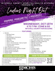Ladies Night Out! A night of health, wellness and fun by the Mitchell County Hospital Health Systems. Raffles, food and...