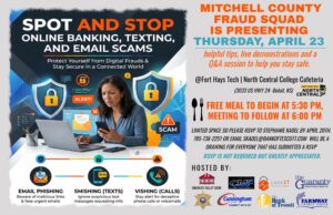 On Thursday, April 23 at Fort Hays Tech conference room, the Fraud Squad (Solomon Valley Bank, CMF Security Solutions, LockIT,...