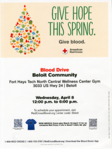 Give hope this spring-give blood! The upcoming Beloit Community Blood Drive will be Wednesday, April 8 from 12-6 pm at...