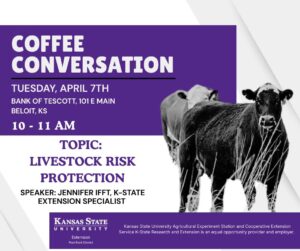 Join us for the first Coffee Conversation meeting on Tuesday, April 7, in Beloit, where we’ll discuss Livestock Risk Protection...