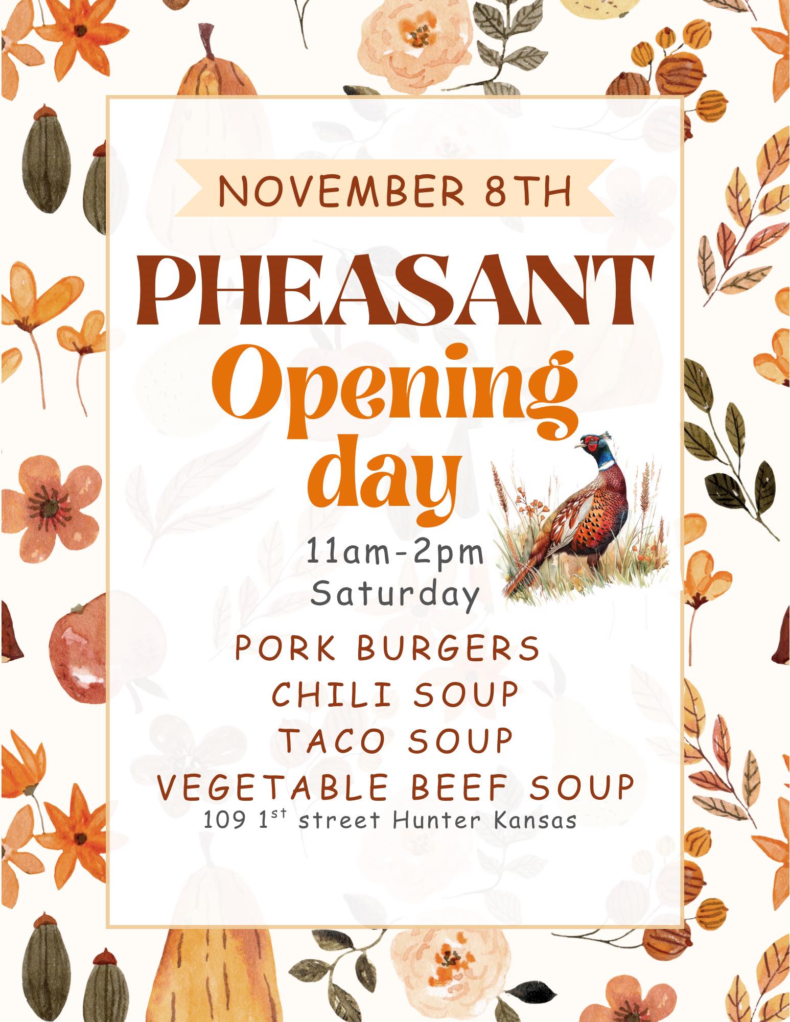 Hunter Cafe will be serving pork burgers, chili, taco soup, and vegetable beef soup from 11 am to 2 pm.