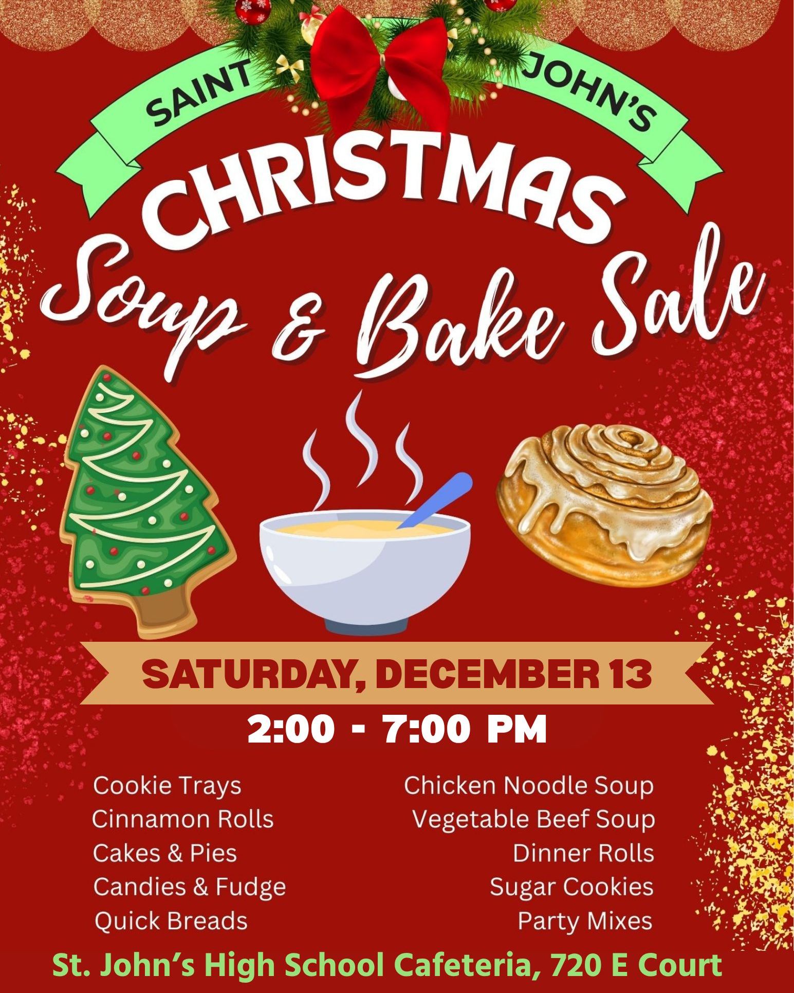 Saturday, December 13 from 2-7 pm. Enjoy homemade soup and a bake sale at St. John’s High School cafeteria, 720 E. Court.