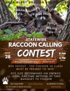 The Kansas Night Hunters Association announces their annual banquet at Down Under Ballroom, Saturday, March 28 from 6-9 pm. Raffles, games and prizes as well as a dinner. $50 for […]