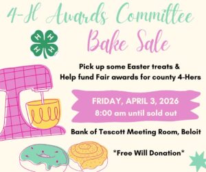 The 4-H Awards Committee will be having an Easter bake sale on Friday, April 3 starting at 8 am at...