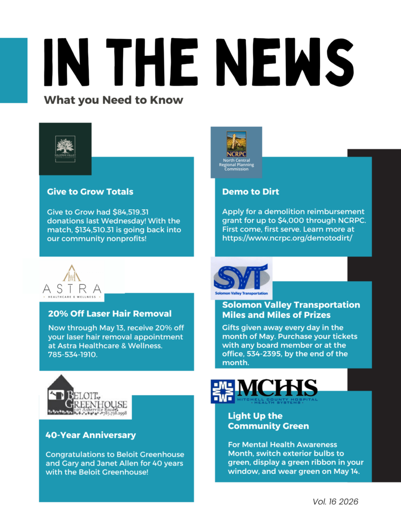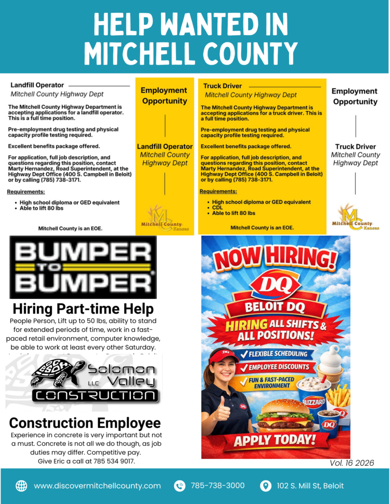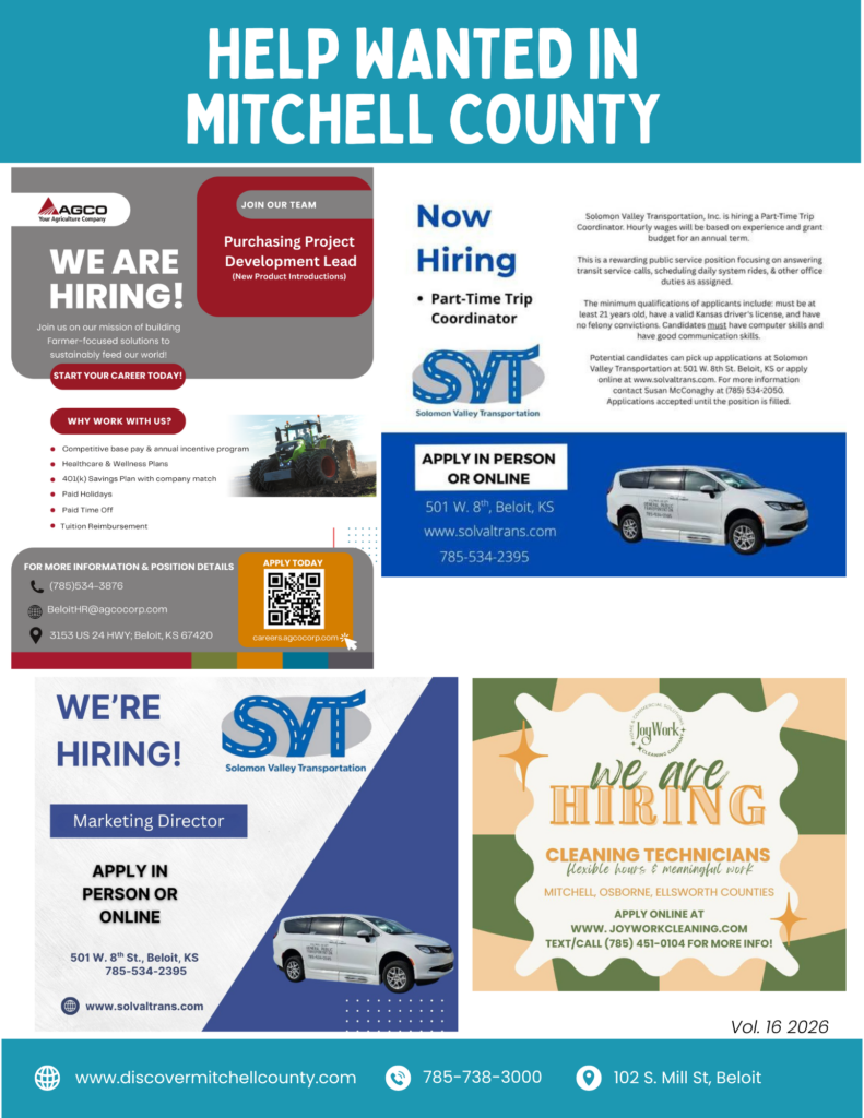 Learn more about Beloit, Cawker City, Glen Elder, Hunter, Scottsville, Simpson, and Tipton!