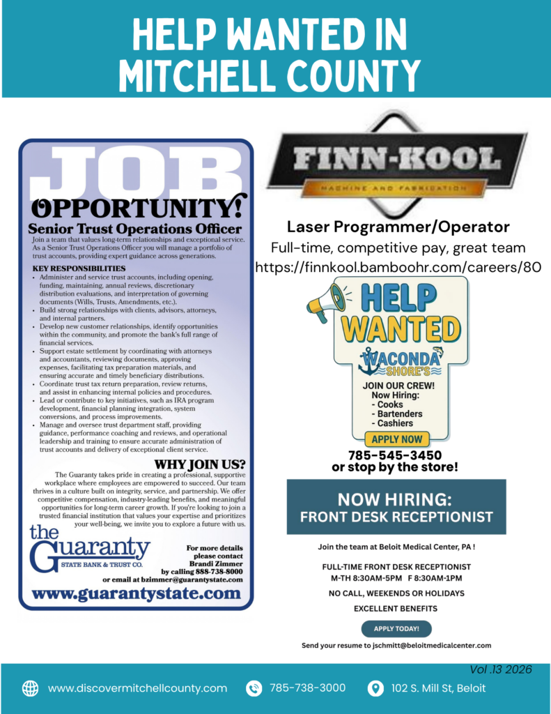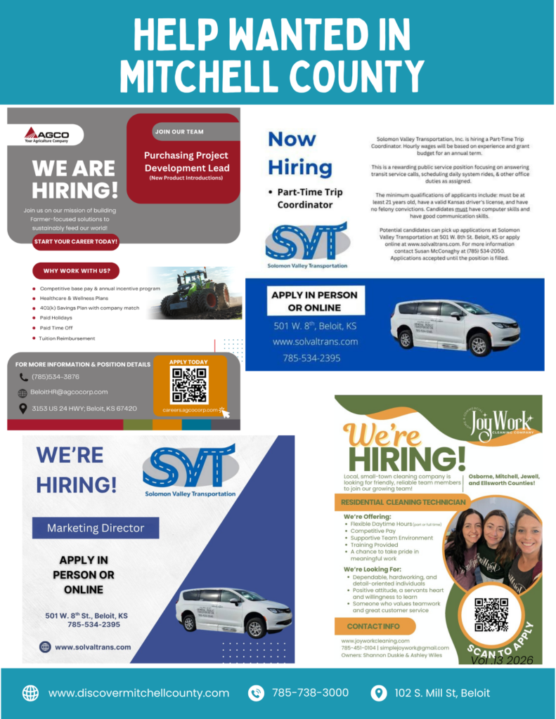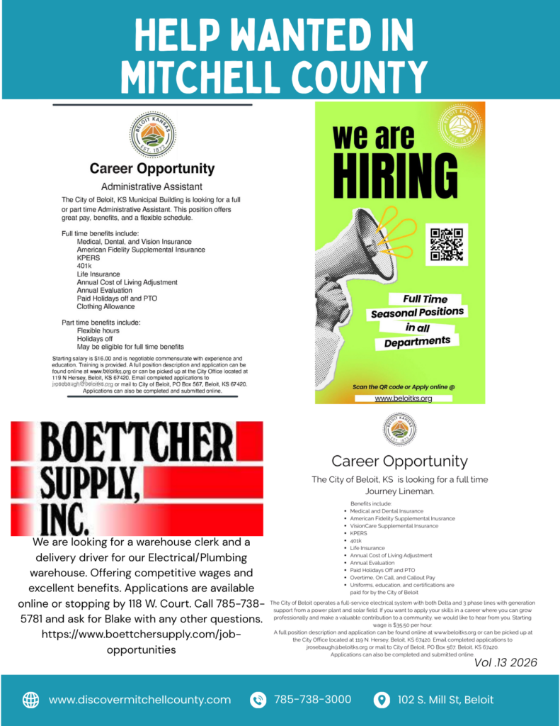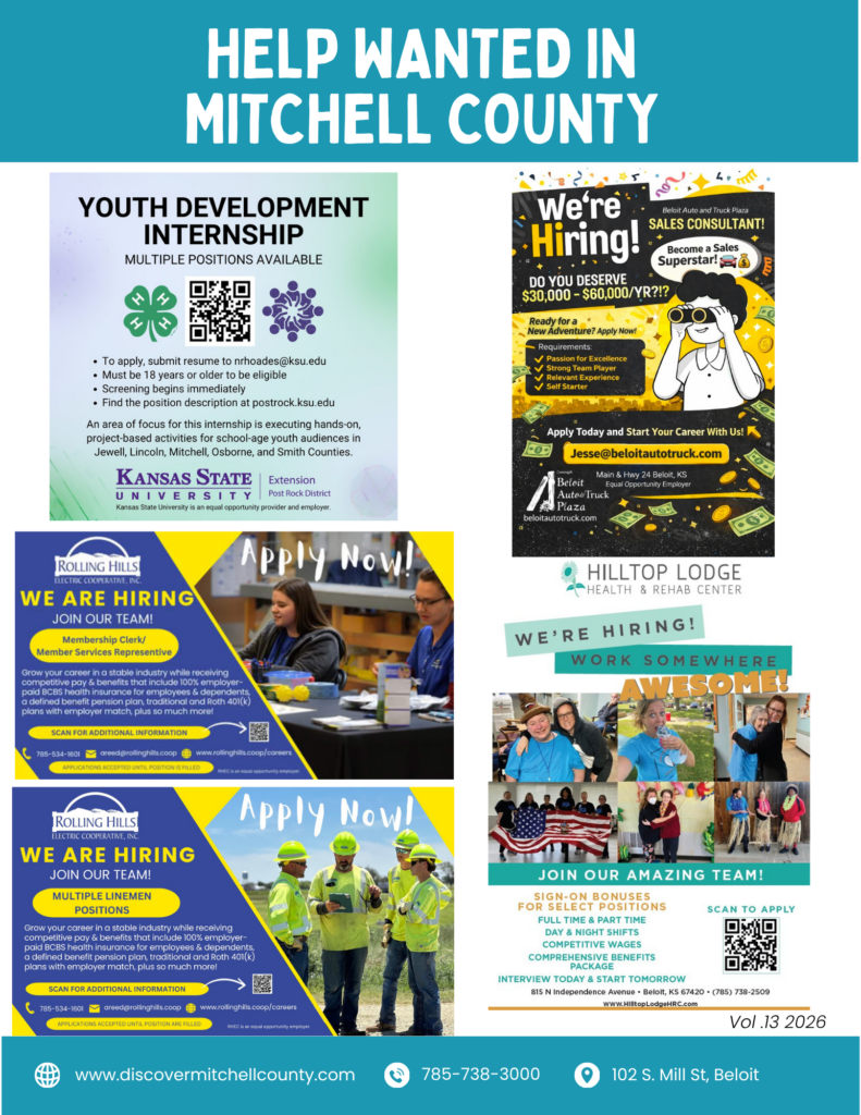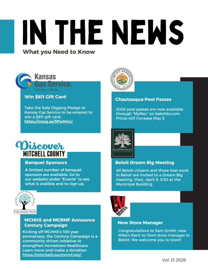 Learn more about Beloit, Cawker City, Glen Elder, Hunter, Scottsville, Simpson, and Tipton!