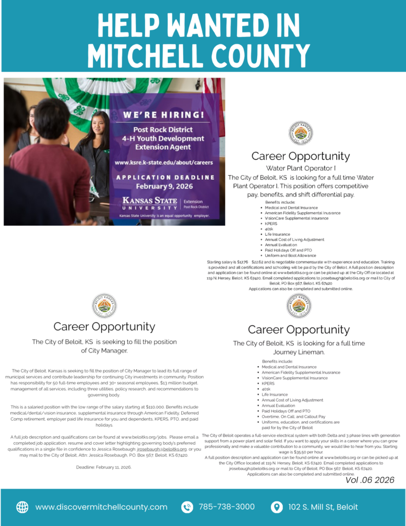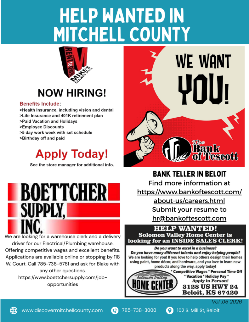 Learn more about Beloit, Cawker City, Glen Elder, Hunter, Scottsville, Simpson, and Tipton!