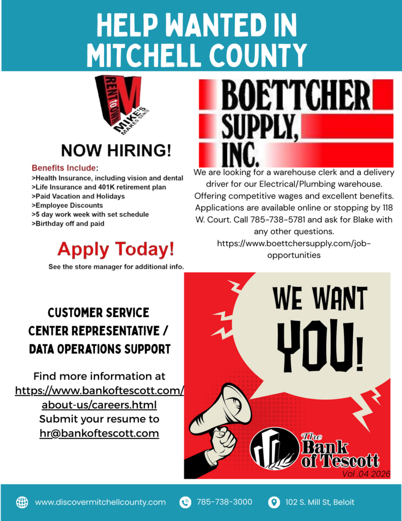 Learn more about Beloit, Cawker City, Glen Elder, Hunter, Scottsville, Simpson, and Tipton!