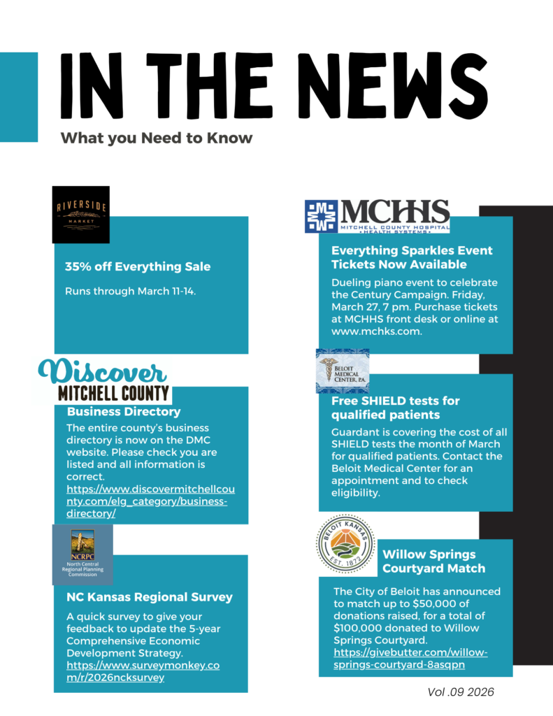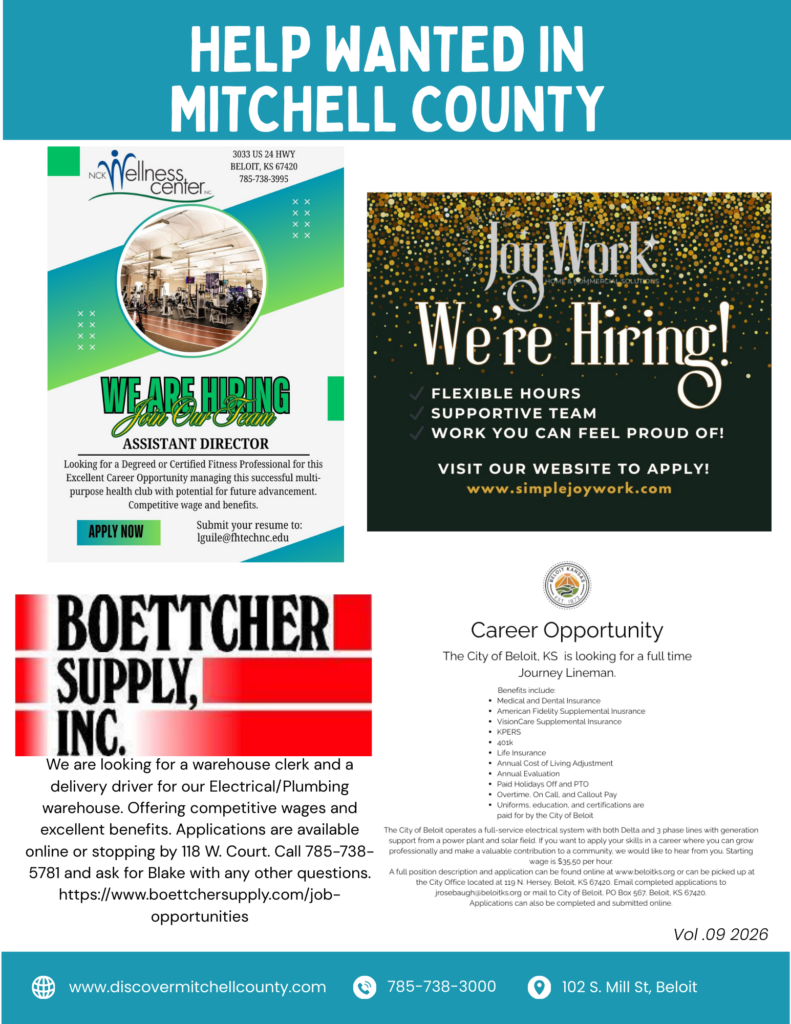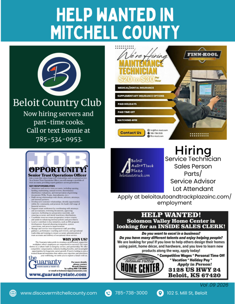 Learn more about Beloit, Cawker City, Glen Elder, Hunter, Scottsville, Simpson, and Tipton!